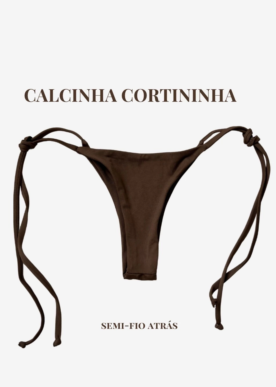 Estilo cortininha, de amarrar nas laterais, semi-fio na parte de trás