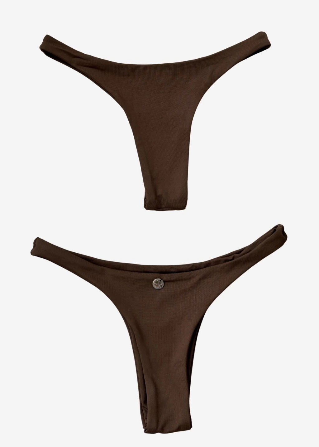 Modelo asa delta, podendo usar ele mais alto ou na altura do quadril, semi-fio na parte de trás.